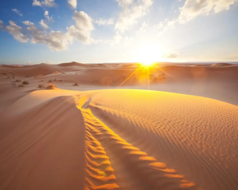 Prima colazione in hotel. La giornata inizia con la visita della città costiera di Sur e alla fabbrica di dhow (barche tradizionali in legno), che variano nel design e nelle dimensioni. Successivamente, sosta fotografica al faro di Ajya. Visita dell'incantevole Wadi Bani Khalid. Oltre il villaggio con le sue infinite piantagioni di datteri si raggiunge il magnifico Wadi che forma una serie di piscine di acqua fresca, profonda, assolutamente mozzafiato. Tempo libero per tuffarsi tra le acque cristalline. Pranzo in un ristorante locale. Arrivo all'inizio del deserto di Wahiba. Le dune arrivano a 200 km di lunghezza e 100 km di larghezza fino al Mar Arabico e sono la terra dei beduini da 7.000 anni. Possibilità di avventurarsi tra le alte dune e assistere a un indimenticabile tramonto nel deserto, per poi raggiungere il campo. Cena e pernottamento al campo.